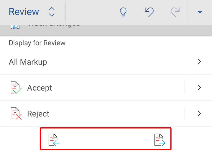 Revisar(Review) , aceptar(Accept) o rechazar cambios en la (Reject Changes)aplicación móvil(Mobile App) de Word