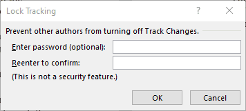 - Si lo desea, seleccione la flecha desplegable en el botón Control de cambios(Track Changes button) para bloquear el seguimiento(Lock Tracking) . Puede optar por agregar una contraseña para evitar que otras personas desactiven el control de cambios(Track Changes) .