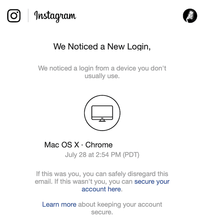 Revisa tu correo electrónico para ver si hay un mensaje de Instagram . Si su cuenta fue pirateada, encontrará un nuevo correo electrónico sobre una actividad sospechosa de su cuenta o sobre cambios en los detalles de su cuenta.