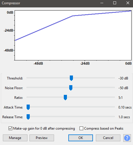 Use la imagen de arriba como guía para una buena configuración vocal para el habla general. Si es demasiado bajo o demasiado alto, en general, también puede usar Effects > Amplify para aumentar o reducir el volumen general.