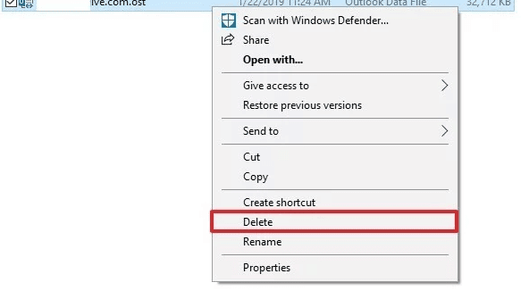 15.Haga clic derecho en el archivo .ost(.ost file) de la cuenta que tiene el problema y haga clic(issue and click) en el botón Eliminar.( Delete button.)