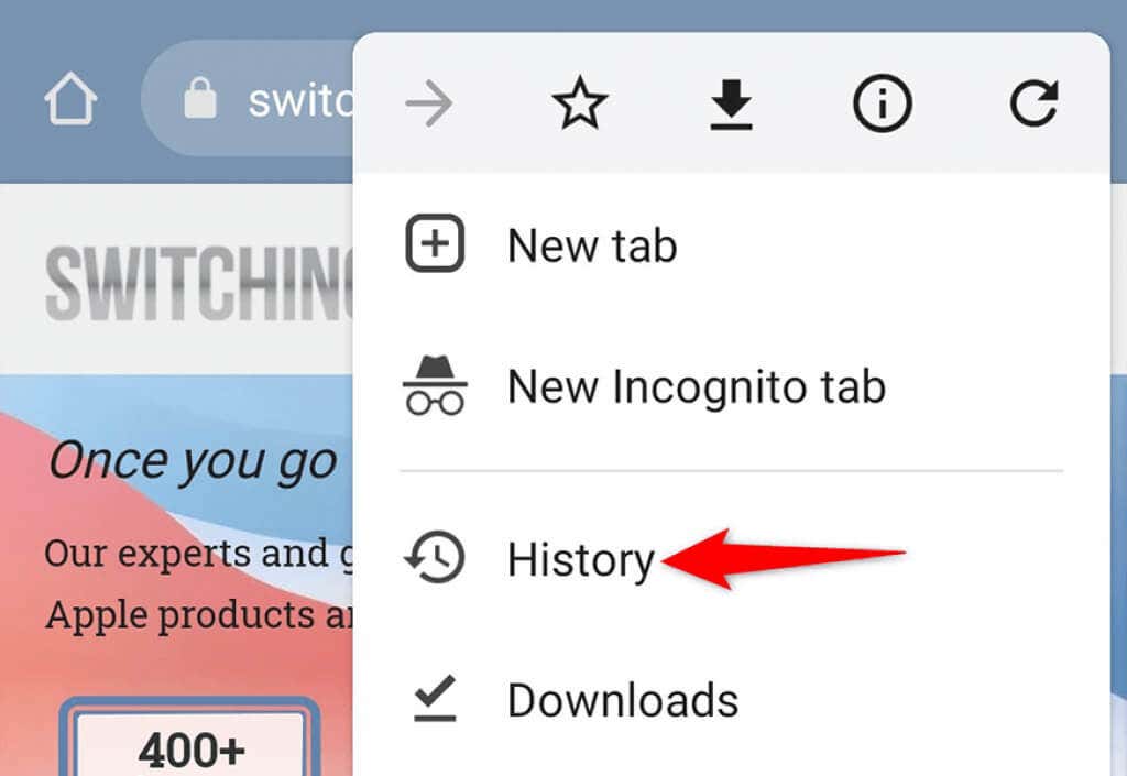 - Toque los tres puntos en la esquina superior derecha y seleccione Historial(History) .