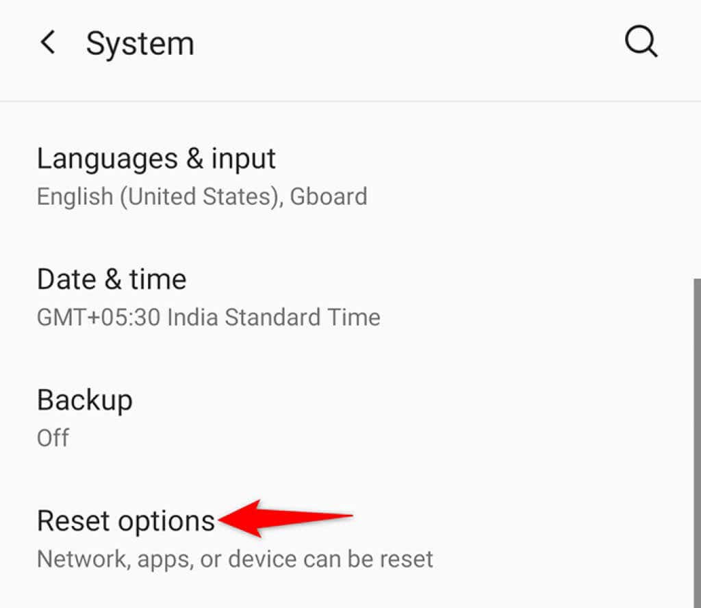 - Dirígete a Sistema(System) > Restablecer opciones(Reset options) en Configuración.