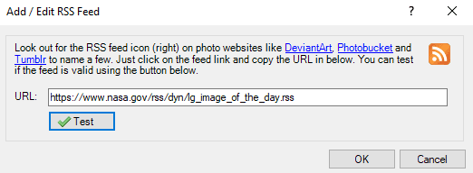 - Adelante direcciones URL de la fuente RSS las imágenes de las que desea obtener imágenes.