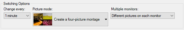 - En cambiar lo que(Cambiar qué) elige la frecuencia que quieras JBS gire las imágenes de fondo de pantalla como fondo de escritorio. períodos de tiempo(Tiempo) Van desde un minuto hasta siete días.