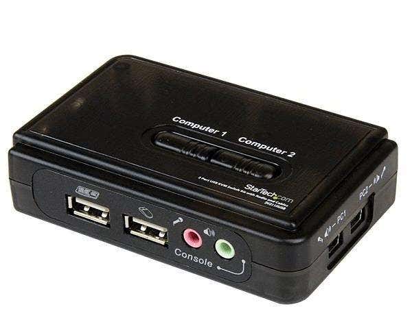 Se puede comprar un interruptor de hardware confiable por $ 20- $ 30 en Amazon . Una vez que llegue, podrá conectar el conmutador a dos computadoras y luego conectar sus periféricos al conmutador de hardware.