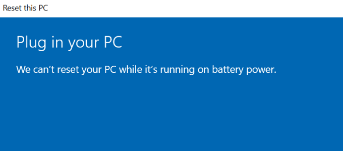 En este caso, le recomendamos que reinicie su computadora con alimentación de CA y pruebe la herramienta » Restablecer(Reset) esta PC» nuevamente. Si el mensaje de error persiste, siga los pasos de solución de problemas a continuación.