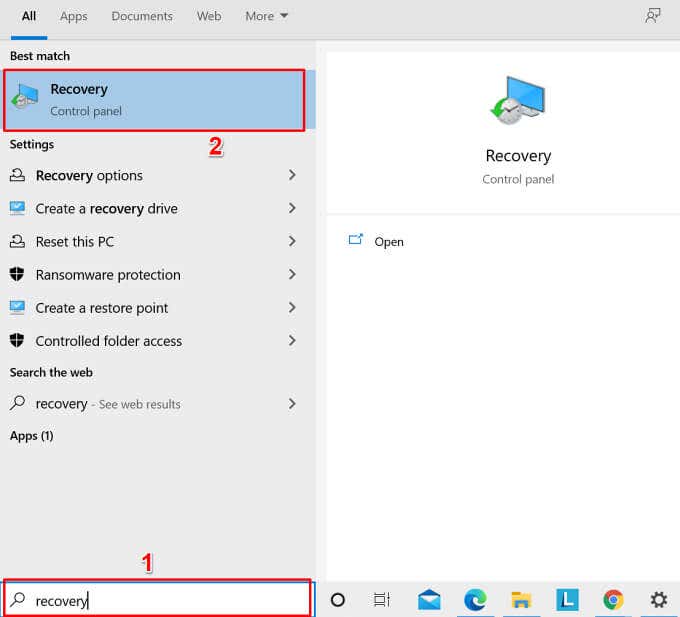 - Escriba recuperación(recovery) en la barra de búsqueda de Windows y seleccione la opción (Windows Search)Recuperación(Recovery) en el panel izquierdo del Panel(Control Panel) de control .