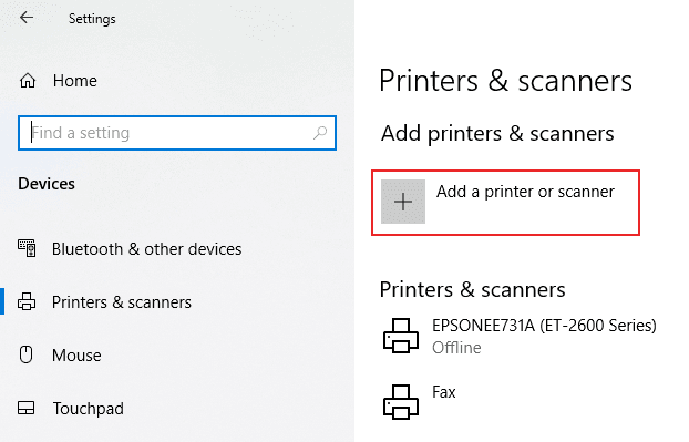 - En la parte superior, haz clic en Agregar una impresora o un escáner(Add a printer or scanner) .