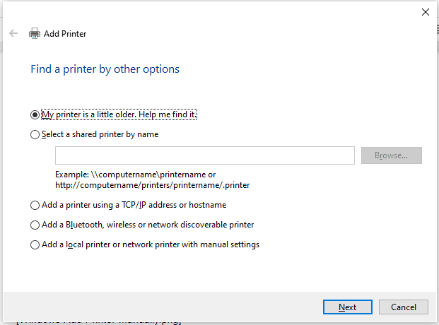 - Seleccione Mi impresora es un poco más antigua(My printer is a little older) si su impresora es más antigua (por ejemplo, si no usa (t use) USB ).