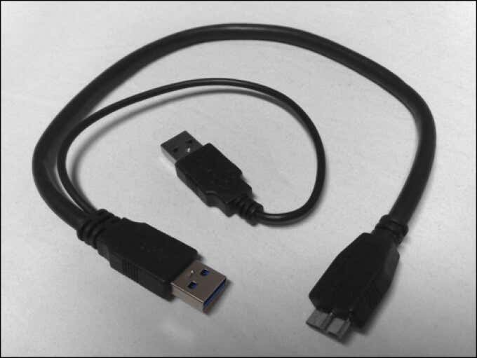 Algunas carcasas de discos duros USB , por ejemplo, se suministran con un cable (USB)USB de dos cabezales. El propósito es conectar la unidad a dos puertos USB separados , distribuyendo la energía y la carga de datos entre dos puertos y dando a la unidad suficiente energía para funcionar.