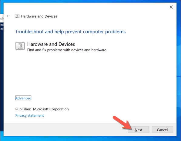 Ejecute la herramienta de solución de problemas de hardware y dispositivos(Run the Hardware and Devices Troubleshooting Tool)