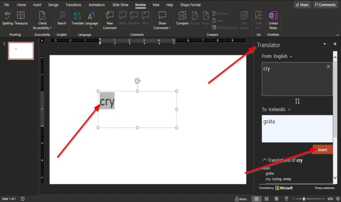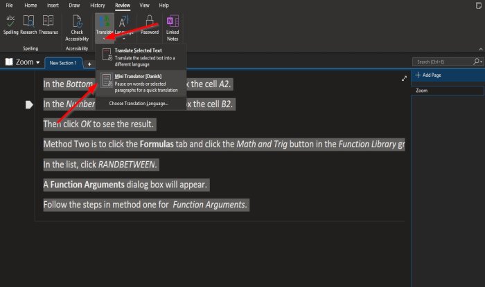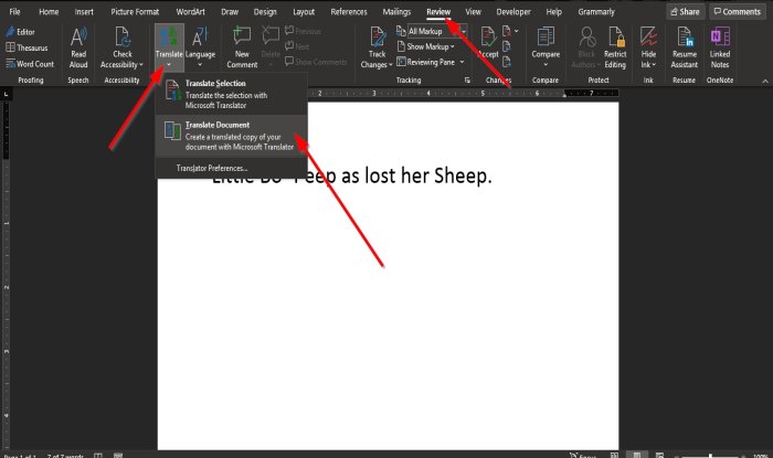 Aunque la función de Traducir(Traducido) ofrecido en los programas microsoft-office Qué Microsoft Word , Microsoft Excel , PowerPoint y OneNote, traducir selección(Selección de traducción) Sí traducir el documento(Traducir el documento) solo se encuentran en Microsoft Word . Objetivo traducir selección(Selección de traducción) es traducir la selección con Traductor de Microsoft(Traductor de Microsoft) y propósito traducir el documento(Traducir el documento) es crear una copia traducida del documento con Traductor de Microsoft(Traductor de Microsoft) .