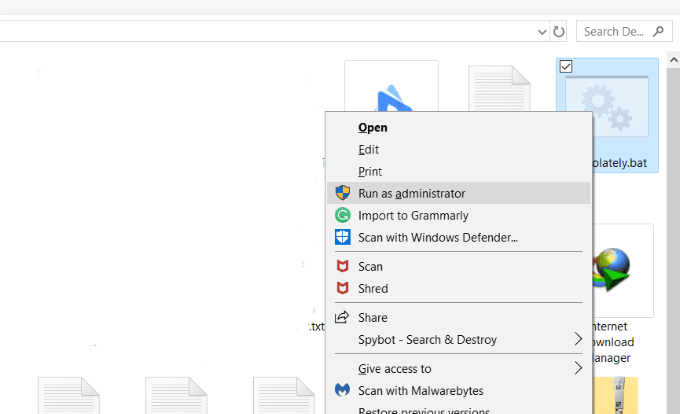 - Después de guardar el archivo de texto con la extensión .texto renombrar con extensión .murciélago . Haga clic derecho en el nuevo archivo .bat y seleccione Ejecutar como administrador(Ejecutar como administrador) .
