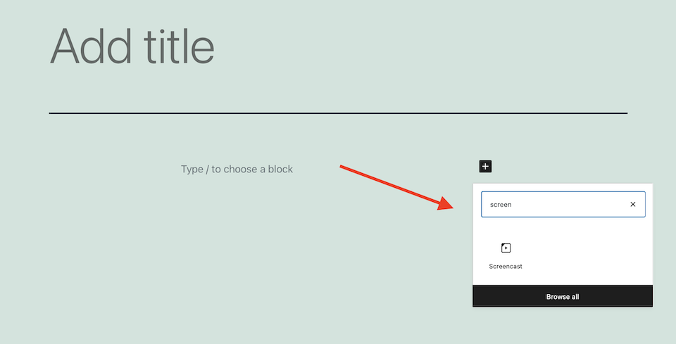 en lugar de hacer clic Signo de más En una publicación o sitio web de WordPress, puede realizar una de las siguientes acciones para agregar un bloque Screencast: