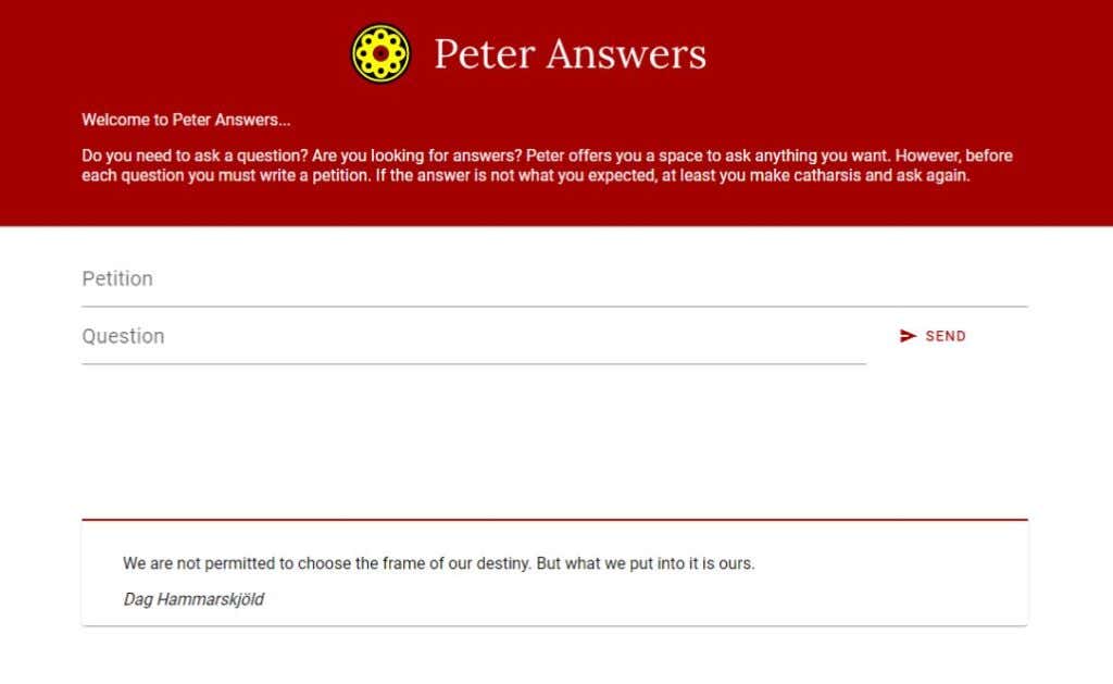 Cuando visite Peter Answers(visit Peter Answers) por primera vez, verá un sitio web simple con dos campos. El primer campo es un cuadro de Petición(Petition) y el otro es un cuadro de Pregunta(Question) .