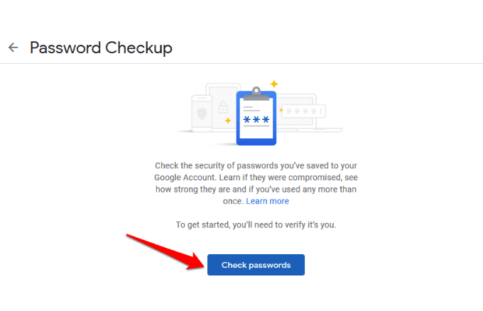 Con la herramienta de verificación de contraseñas(Password Checkup tool) , se le notificará cuando sus contraseñas se vean comprometidas en una brecha de seguridad(security breach) conocida , si se están utilizando en varios sitios para que pueda cambiar las cosas y si son demasiado débiles para ser efectivas para que pueda puede crear contraseñas más seguras.