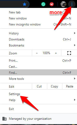 Para borrar sus contraseñas en su computadora, abra el navegador Chrome(Chrome browser) , haga clic en Más(More) (tres puntos) en el lado superior derecho de la ventana y seleccione (window and select) Configuración(Settings) .
