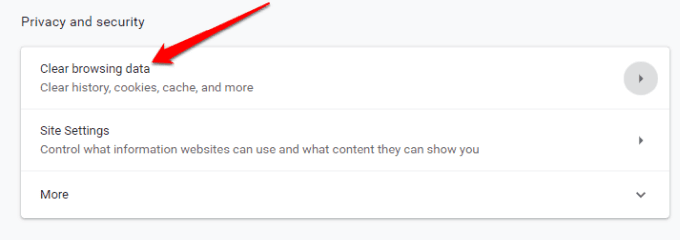 Ve a la sección Privacidad y seguridad(Privacy and Security ) y haz clic en Borrar (Clear) datos de (data)navegación(browsing) .