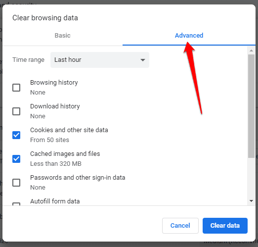 En la nueva ventana, haga clic en la pestaña Avanzado . (Advanced)Si ha iniciado sesión en varias cuentas, verifique que la cuenta de la que desea borrar los datos sea la correcta.