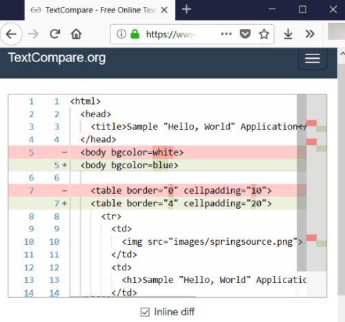 TextCompare es una buena herramienta para encontrar similitudes y diferencias entre dos copias de un documento. Puede cargar documentos originales y modificados y luego hacer clic en el botón Buscar diferencia(Find Difference) para enumerar los cambios entre ellos. Le permite ver los cambios en línea, así como las diferencias en una vista de lado a lado. También puede comparar archivos de Excel y PDF a través de él.