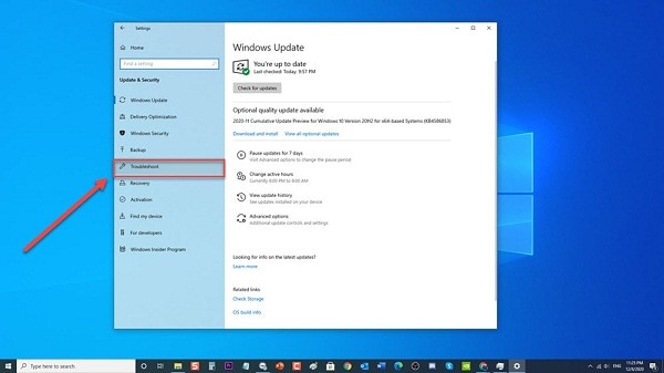 - Posterior a esto, deberás hacer clic sobre el Solucionar problemas que se encuentra en el panel izquierdo. Esto te mostrará la lista de procedimientos de solución de problemas que puede realizar en tu ordenador.