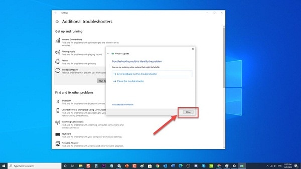 - Una vez que se complete el proceso de solución de problemas y no se identifique ningún problema, solo haz clic en Cerrar y salir de la sección de configuración.
