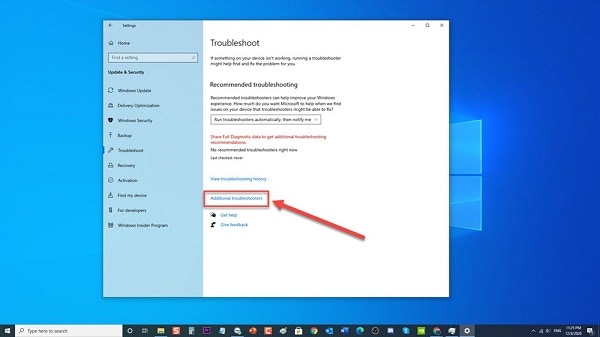 - Seguido de esto, tienes que hacer clic en el solucionador de problemas adicionales que se observa en el panel derecho. Se te mostrarán más solucionadores de problemas.