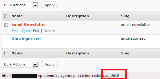 Después de crear la categoría, tome nota del ID de la categoría, que puede obtener pasando el cursor sobre la categoría recién creada y comprobando la barra de estado en busca de texto como «ID =» y el número que sigue al signo igual es el ID de la categoría.