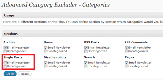 Paso 3 – Ocultar publicaciones de las categorías de boletines por correo electrónico