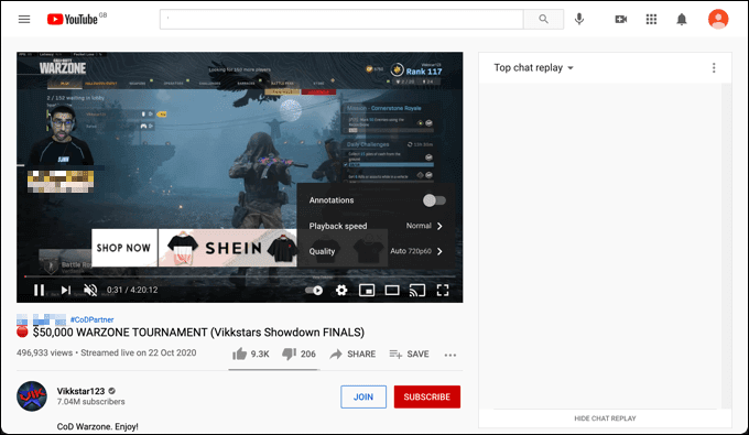 Desafortunadamente, algunas de las funciones más conocidas de YouTube (como rebobinar un video en vivo) no están disponibles para los espectadores de transmisiones en vivo de Twitch . YouTube permite esto para transmisiones en vivo, por lo que si tiene una conexión deficiente o simplemente necesita detenerse por un momento, puede pausar o rebobinar la transmisión para ponerse al día.