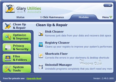 Pierwsza rzecz, na którą zwracasz uwagę Glary Użytkowe za darmo to kompaktowy, ale łatwy w użyciu interfejs. Interfejs jest intuicyjny i bardzo łatwy w użyciu. Oferuje kilka modułów, które obiecują utrzymać komputer z systemem Windows w najlepszym stanie.