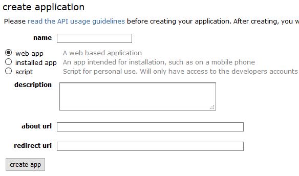 El formulario ahora debería estar visible en su pantalla, así que complételo y luego haga clic en Crear una aplicación(Crear aplicación) para completar el proceso.