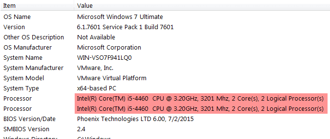 En el lado derecho, verá varios elementos que le informan sobre su computadora. Debería ver una o más líneas relacionadas con el procesador. Si tienes más de uno Procesadores , mostrará cada uno de ellos en una línea separada. Ahora puedo decir que mi máquina tiene dos Procesadores(procesadores) cada uno con 2 núcleos.