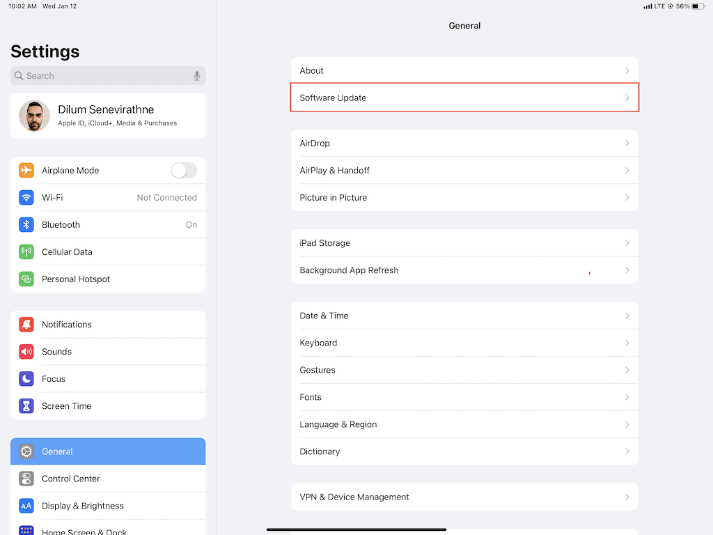 Además, su teclado puede requerir la última versión de iPadOS para funcionar correctamente. Vaya a Configuración(Settings) > General > Actualización de software(Software Update ) para actualizar su iPad a su última versión.