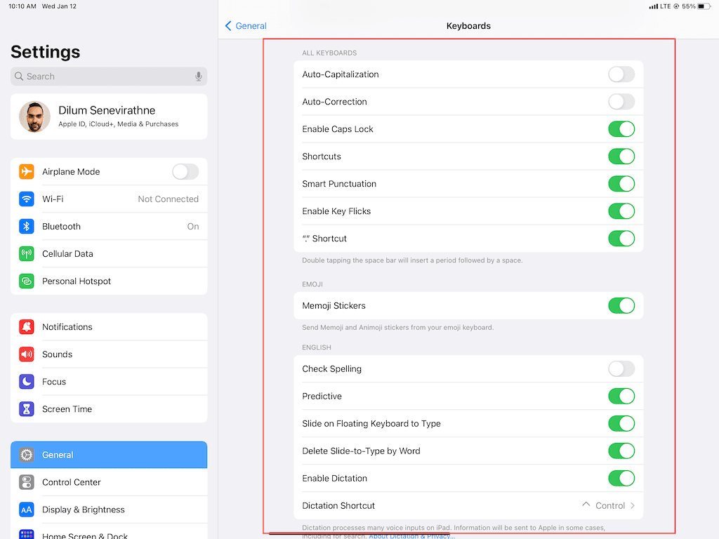Revise la configuración del teclado en pantalla de su iPad y asegúrese de que estén configurados según sus preferencias. Por ejemplo, si Slide to Type no funciona en el teclado flotante, es una buena idea verificar si la configuración relevante está activa.