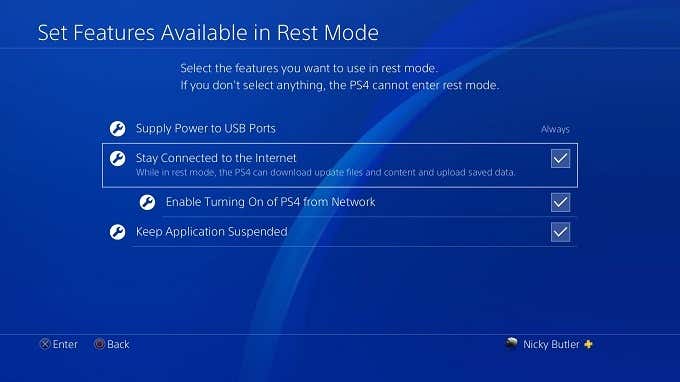 Hay dos casillas que necesitan ser marcadas. El primero es Manténgase conectado a Internet(Manténgase conectado a Internet) y el otro es Enciende la PS4 desde la red(Habilitar encender la PS4 desde la red) . Debe encender el primero antes de poder encender el segundo. [[[[