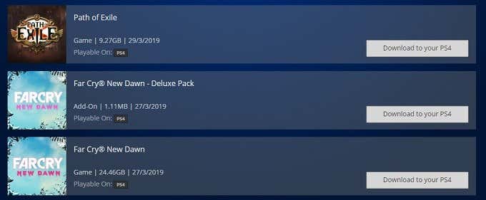 La primera es simplemente buscar el juego que ya tienes en tienda psn(tienda de PSN) . En cambio Añadir al carrito(Añadir a la cesta) verás un botón llamado Descargar en PS4(Descargar en PS4) . Si hace clic en esto y sigue los consejos a continuación, el suyo ps4 comenzará a descargar el juego.