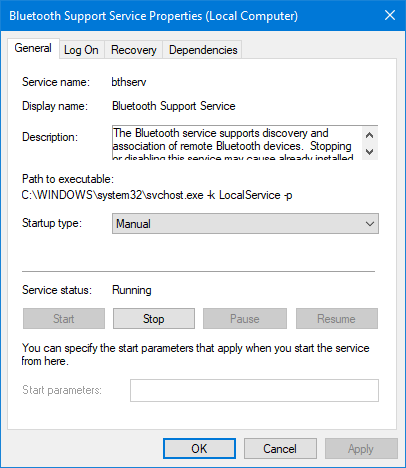 - Servicio de soporte manual de Bluetooth(Servicio de soporte Bluetooth – Manual) ( activado(Enfadado) )