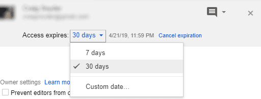 Si tiene una cuenta con una organización de G Suite que no es heredada, la caducidad del acceso a los archivos compartidos es uno de los muchos beneficios infrautilizados que puede aprovechar. Solo toma unos segundos, ¡así que no dejes que esos archivos confidenciales anden por ahí para siempre!