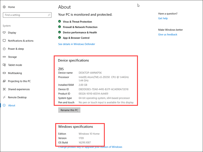 los edición(Edición) y versión(Versión) Con ventanas instalado están justo debajo Especificaciones de Windows.(Especificaciones de Windows).