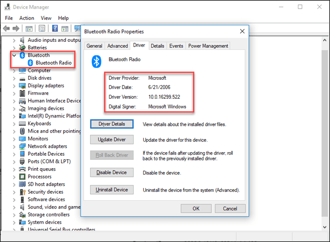 Ahora ve a la pestaña Controlador(conductor) y la información que necesita está allí. Aquí también es donde puede actualizar sus controladores(puedes actualizar los controladores) y deshabilite o desinstale el dispositivo problemático.
