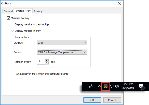 - presiona el botón Aceptar(ESTÁ BIEN ) para aplicar la configuración y luego minimizarla en la bandeja. Verá la temperatura que se muestra en la imagen de abajo.