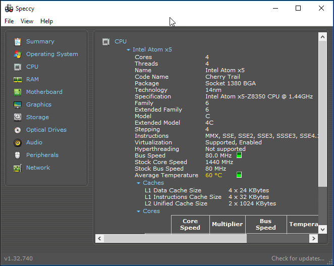 Tenga en cuenta que también muestra la temperatura de la CPU(muestra la temperatura de la CPU) . Esta es información crucial cuando se resuelven muchos problemas informáticos. No lo midas solo una vez. Dejar especificidad abierto y se puede ver el cambio de temperatura. Mejor(Mejor) todavía estoy corriendo especificidad en la bandeja del sistema y mostrará la temperatura actual de la suya Procesadores.