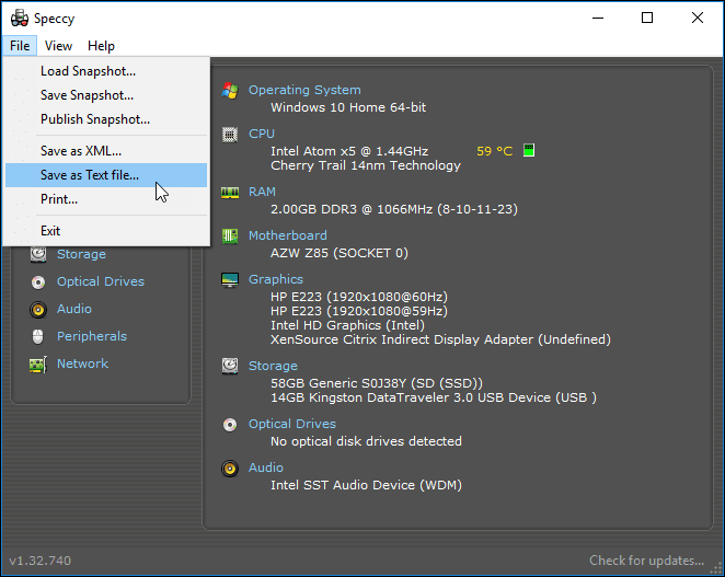 ¿Quiere registrar rápida y fácilmente las especificaciones del hardware de su computadora? especificidad es una herramienta para ti y es gratis. Es posible que desee obtener la versión portátil de la aplicación si trabaja en diferentes computadoras y desea realizar un seguimiento de todas sus especificaciones.