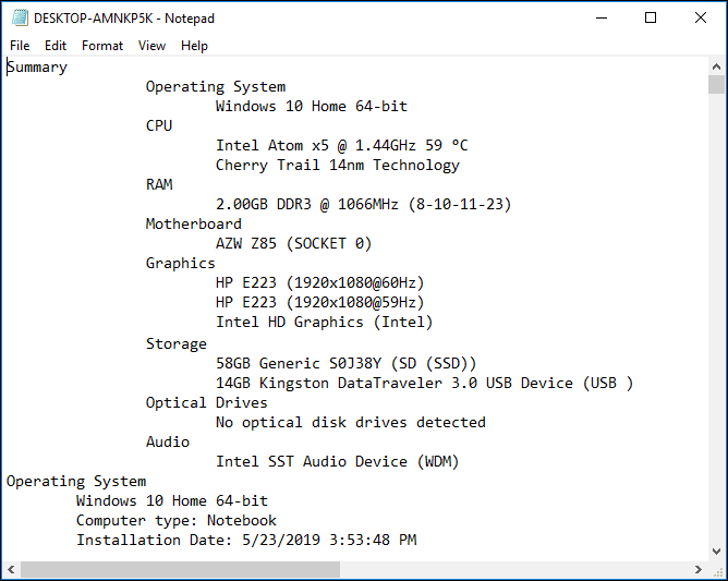 ¿Quiere conservar esta información para poder consultarla más tarde, por ejemplo, en una tienda de informática? Ellos pueden. haga clic aquí Archivo > Guardar como archivo de texto y guardarlo en cualquier lugar.