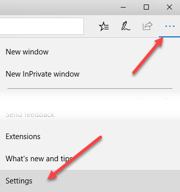 Abajo Borde de Microsoft haga clic en los tres puntos horizontales en la esquina superior derecha, luego haga clic en Ajuste(Ajustes) abajo.