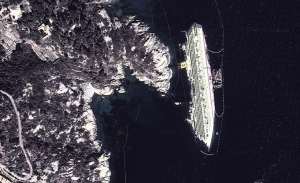 En la isla de Giglio, los restos de un crucero que naufragó el año pasado todavía están bloqueados, y en Google Maps los restos son claramente visibles, estacionados en una posición «estacionada» por el capitán culpable.
