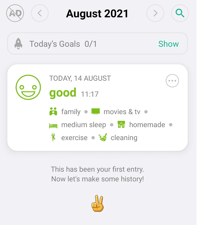 Disponible en Play Store y Apple Store , Daylio es una versión interesante del diario. A diferencia de las otras opciones en esta lista, no puede escribir en Daylio a menos que desee agregar notas complementarias. En su lugar, Daylio muestra indicaciones como cómo te sientes y qué hiciste durante el día. Simplemente seleccione las opciones de una lista y Daylio le brinda una imagen general de su día.