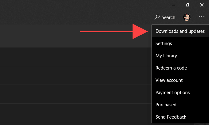 2. Seleccione el ícono con 3 puntos en la parte superior derecha de la pantalla y seleccione Descargas y actualizaciones(Downloads and updates) .